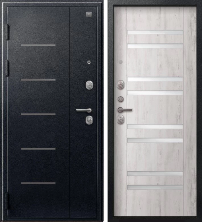 Надежная входная Дверь V-07 Черный муар - Дуб пепельный премиум класса по цене 37 500 руб. Большая толщина стали защитит от проникновения в ваш дом, квартиру или коттедж. Используется очень качественная фурнитура: замки, цилиндры, ручки, защелки. Покрытие и отделка двери изготовлено под внимательным контролем производителя. Дверь имеет долгий срок службы и гарантию.